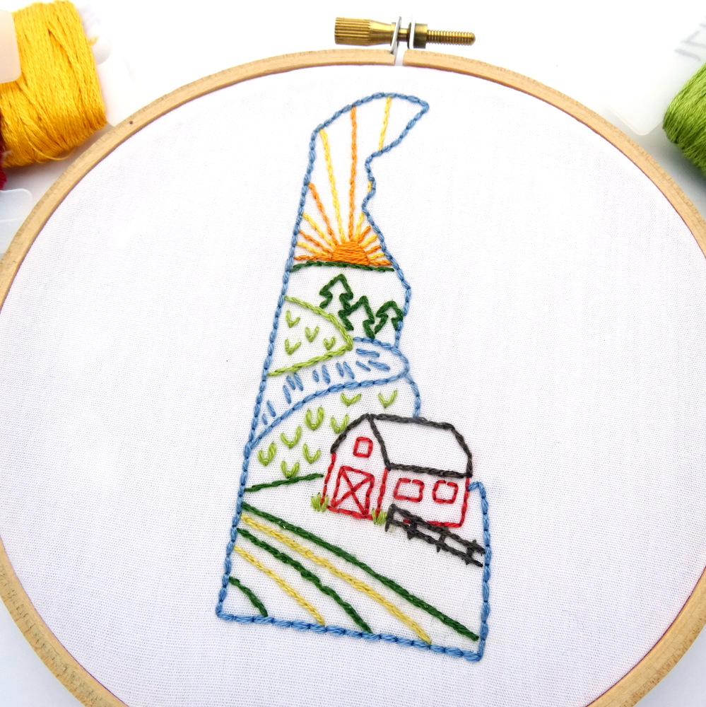 Iowa leads the nation in corn production. With fields of waving cornstalks spread across the state, this unique hand embroidery design seeks to capture the essence of this midwestern state.