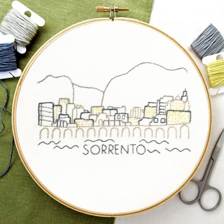 Stitch up the Sorrento coastline with this simple geometric pattern. Featuring many of the most famous buildings in the city, this pattern captures the best of the Sorrento, Italy skyline.